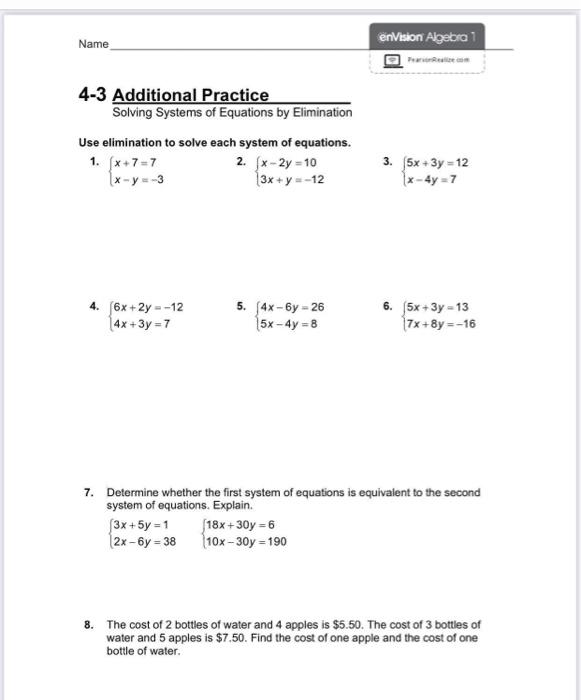 for "Algebra 2 Solving Systems Of Equations Answer Key - Solved Systems Of Equations Practice Date Solve Each Sy Chegg Com"